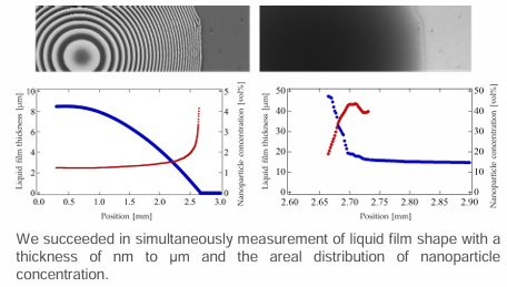 Recently, nanomaterials with innovative functionalities, such as nanofluids (nanoparticle/solvent mixture) and polymer nanocomposite materials (nanoparticle/polymer mixture), have been extensively investigated. These nanomaterials find diverse applications in fields including conductive nano-inks, solar cells, and sensors, and are frequently utilized as thin films. During the coating and thin-film formation processes of nanomaterials on substrates, a technique capable of precisely observing the liquid film shape and the behavior of the contained nanoparticles is essential.